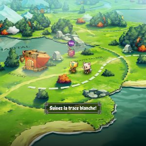 Pour varier les plaisirs, ça et là sur la carte nous croiserons non seulement des villes, mais aussi des grottes et des donjons qui sont explorables et doivent presque toujours être vidés de leurs occupants pour récupérer des équipements dans le contenu de coffres. Ces équipements sont assez nombreux et variés et peuvent être améliorés, soit chez un forgeron, soit en récoltant un objet identique qui, plutôt que d’être en double dans notre inventaire, améliorera le niveau du premier de manière considérable. Les sorts se trouvent eux aussi sur la carte du jeu et s’améliorent chez les mages. Aucun arbre de compétences en vue ; on l’a dit, Cat Quest se veut être un jeu (trop ?) simple.