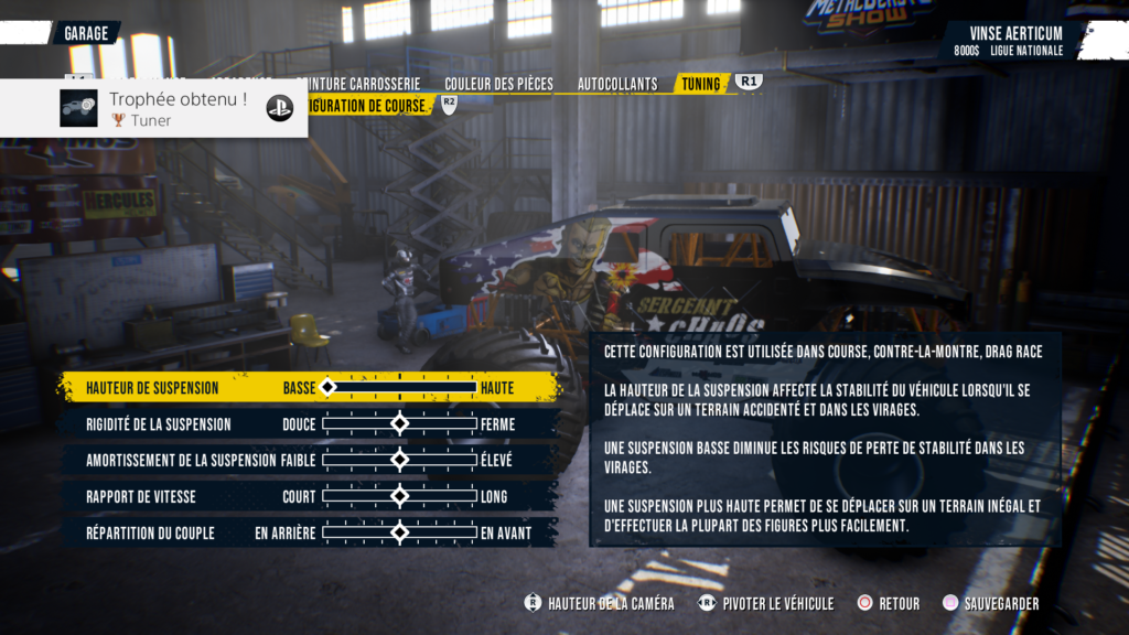 Ces épreuves seront divisées en évènements eux mêmes divisés en ligues dans une carrière assez timide. Nous pourrons gérer de manière très simpliste notre équipe en choisissant d’engager des employés qui peuvent améliorer notre truck mais en récupérant un pourcentage de nos gains, ou d’autres qui à l’inverse n’auront d’autre but que de nous faire gagner de l’argent sans effet sur notre bolide. Nous pourrons aussi signer des contrats avec des sponsors qui, si les conditions sont remplies, offrent de l’argent et débloquent des pièces pour améliorer et personnaliser le truck. Malheureusement, ces contrats se terminent après un ou deux événements ou à la réussite des objectifs et ne se renouvellent pas beaucoup. Nous avons souvent dû signer avec des sponsors que nous savions ne pas pouvoir contenter, juste parce qu’il n’y en avait plus d’autres.